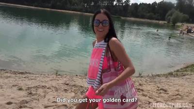 Quando questa brunetta si annoia a casa, va a fare una passeggiata sulla spiaggia per incontrare alcuni amici che vogliono fare sesso all'aria aperta!