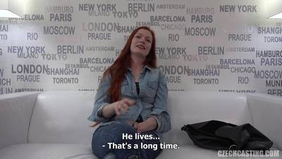 Questa bella rossa si copre di olio e usa le dita sul divano durante questo casting molto caldo!