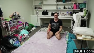 ![Dani Jensen scopa l'istruttore sul divano Dani Jensen scopa l'istruttore sul divano]()