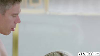 Ad ogni spinta frenetica del grosso cazzo di Mick Blue, Athena Palomino esplode di piacere. Guardate come è bella in ginocchio mentre gli succhia il cazzo!