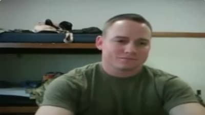 Questo soldato muscoloso e arrapato non vedeva l'ora di tirare fuori il cazzo segarlo per bene in webcam!