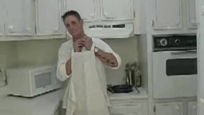 Il cuoco Stevens si diverte tanto in cucina da solo oggi, mentre si afferra il cazzo duro e sborra anche lui
