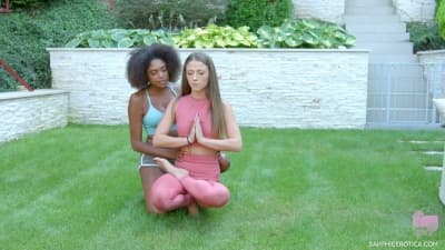 Lo yoga all'aperto si trasforma in una scena di sesso lesbico con due ragazze