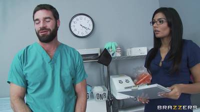L'infermiera bruna e sexy salta sul cazzo del dottore per una scopata intensa nel consultorio!