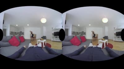 Una tettona bionda cavalca il cazzo ed è filmata in un video AR.