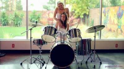 Queste due giovani troiette sembrano interessate ad usare una batteria. Ma sono troppo troie e ben presto si troveranno nude a leccarsi la figa.