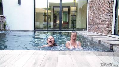 Queste giovani ragazze giocose si divertono tra loro prima di soddisfare l'uomo di casa. Un sacco di olio per queste belle e giovani bionde.