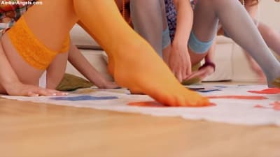 Tre ragazze sexy che indossano calze sexy giocano a twister. Si eccitano e iniziano a giocare con le loro fighette!