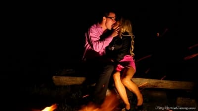 Ha allestito un posto romantico, ha acceso il fuoco e si è divertito a scopare con questa bionda sexy accanto a lui.