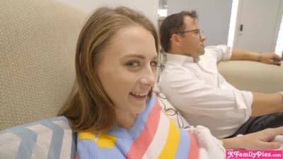 La sua sorellastra è molto eccitata e, anche se il patrigno è seduto accanto, lei glielo sega per bene!