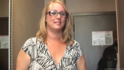 Questa bionda è a un casting speciale per dimostrare cosa sa fare con questo grosso cazzo nero!
