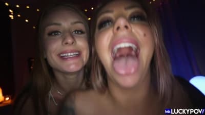 Le due amiche si prenderanno cura di un cazzo in POV succhiandolo e masturbandolo tra le tette!