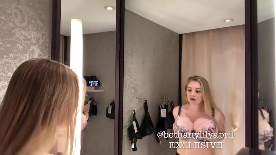 La sexy star bionda amatoriale, la dreamgirl Bethanylilya, è nel camerino a misurare i reggiseni sulle sue tette succose. Ha un aspetto sexy e quelle tette