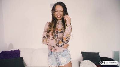 Questo è il primo video porno di questa ragazza spagnola che scoperà il primo uomo che entra dalla porta!