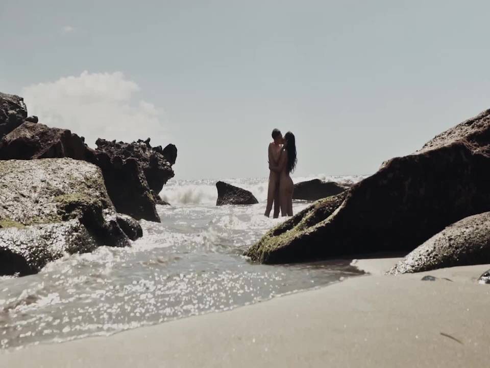 Nudi, mano nella mano, camminano e si baciano su una spiaggia. Che cosa romantica. Vi assicuro che si scalderanno prima di fare l'amore. guardiamoli insieme!