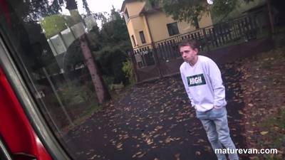 Due amiche mature fanno godere un giovane vergine innocente dentro questo furgone!