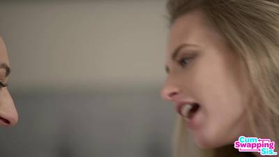 Le due giovani si recano nella camera da letto del loro amico per giocare con il suo cazzo e la sua sborra!