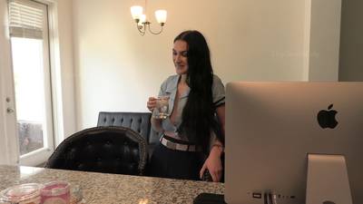 Questa sexy impiegata postale con tette enormi e lunghi capelli scuri non solo consegna la posta, ma fa anche dei bei pompini.