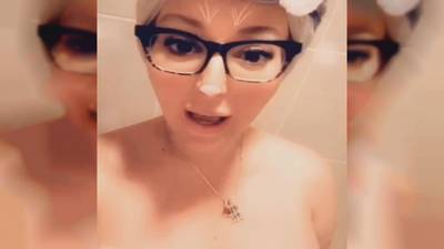 Stassi Rossi accarezza il suo grande seno nella vasca da bagno
