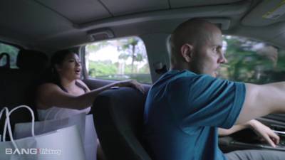 La bomba sexy è tornata dai saldi, è ultra arrapata, mostrerà le tette e vorrà spompinare il cazzo dell'autista! Quando lo sente pronto, gli monta sopra.