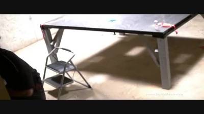 Questo ragazzo innocente viene legato al tavolo. Viene dominato e frustato da transessuali neri che lo scopano nel culo.