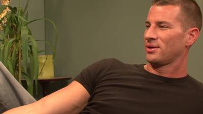 Michael Lucas stantuffa il culo di Rusty Stevens con il suo cazzo e un dildo e Rusty spara il suo sperma su se stesso.