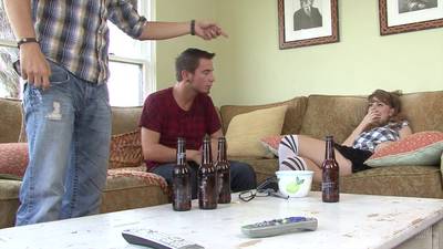 Lui lascia cadere il suo controller della PS2 per scopare la figa della bella rossa. Lei è bagnata e pronta a cavalcare il suo cazzo!