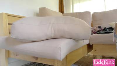 Sul divano del soggiorno lui si sente arrapato e infila il suo grosso cazzo bianco in tutti i suoi buchi fino a scaricare un carico cremoso nel suo culo.