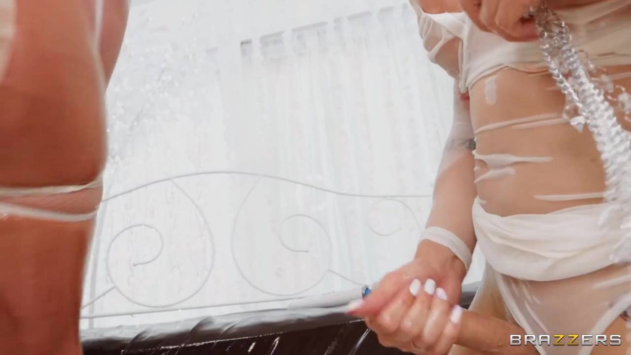 Una bella trans bionda si fa accarezzare il cazzo da una milf perversa che si eccita vedendola coperta di olio. Ha bisogno del suo cazzo!