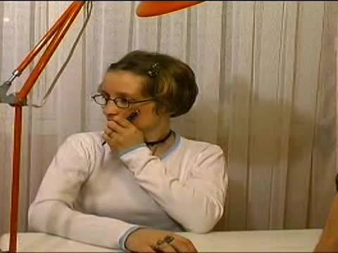 Una studentessa sta studiando quando il suo insegnante entra e si offre di aiutarla. I due iniziano a scopare e poi si unisce un collega.
