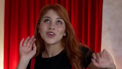 La rossa Marina Gold si spoglia e allarga le gambe per toccarsi le labbra della sua figa rosa depilata!
