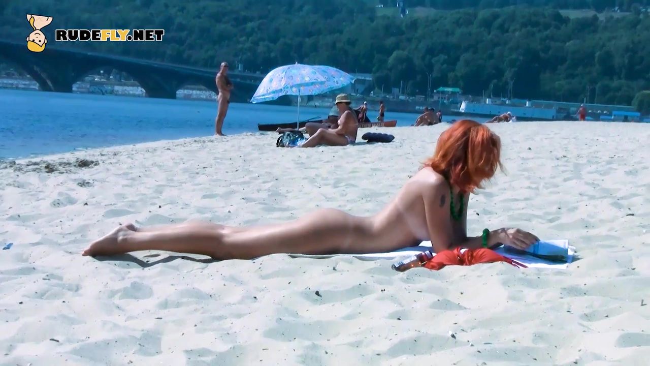 Una calda nudista ama trascorrere una giornata in spiaggia con le sue amiche. Prende il sole e si bagna un po' per rinfrescarsi.