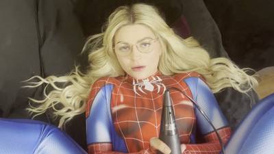 Questa bionda sexy e arrapata, vestita da Spiderman, succhia il cazzo del suo ragazzo per poi cavalcarlo e ricevere il suo sperma in bocca.