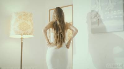 La bella bionda con le tette piccole, la teenager Rachel Rivers, si masturba dolcemente la fica stretta, mentre si cambia la biancheria intima.