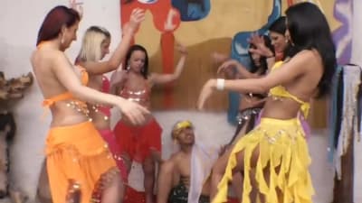 In questo video, vedrete una gangbang in costume! Ragazze transessuali con grandi cazzi scopano i ragazzi nel culo.