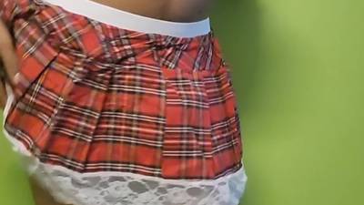 Uomo gay effeminato in gonna scozzese si masturba il cazzo.