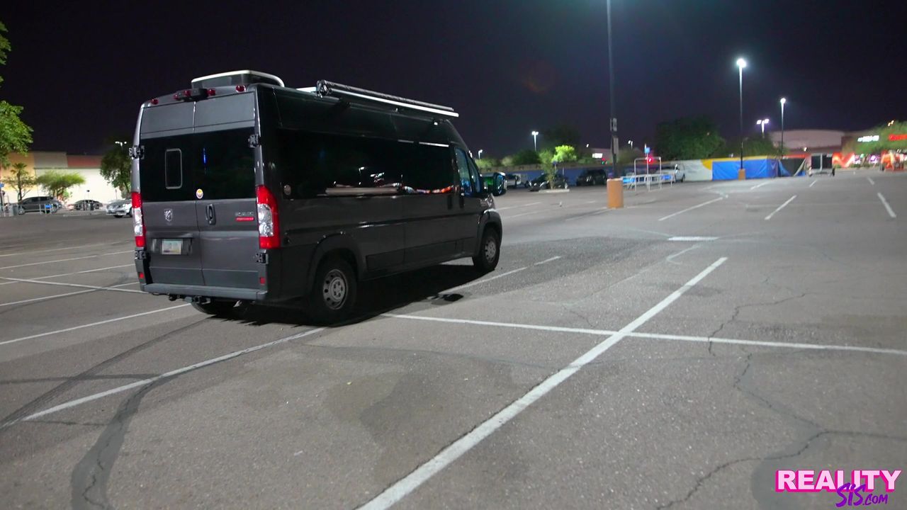 Bruna con piccoli seni scopa in varie posizioni nel van