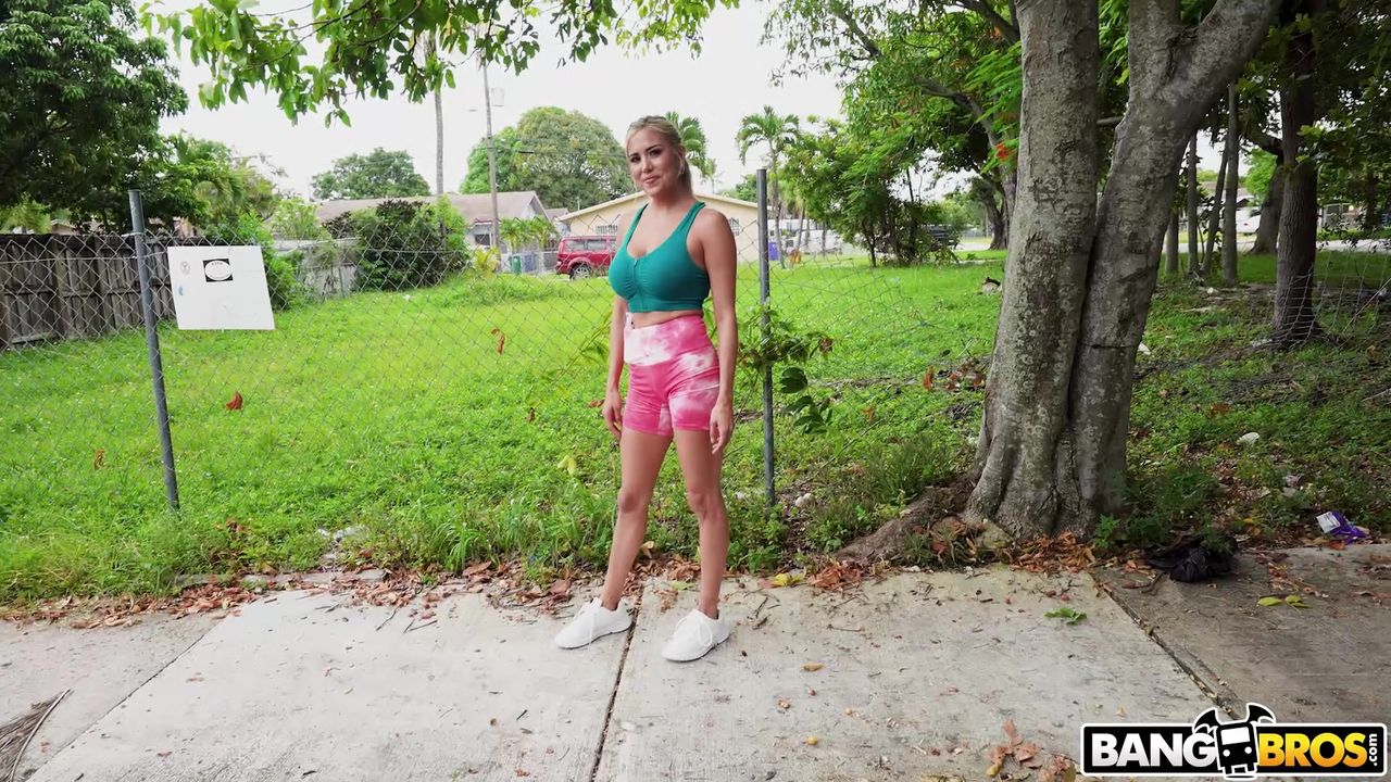 Una sexy bionda che fa jogging viene avvicinata per strada da due ragazzi per una scopata in macchina. Lei non è timida e accetta di godersi la sua figa durante la corsa.