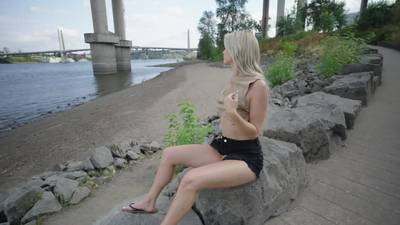Alla bella bionda Kaylee piace camminare nuda nel parco pubblico