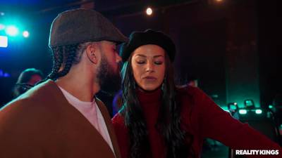 Evelin succhia furtivamente il cazzo nero di James Angel in uno slam poetico