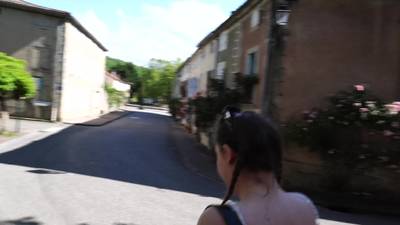 La francesita vuole solo fare marachelle e le viene in mente di tirar fuori un dildo in strada per iniziare a masturbarsi con il timore che qualcuno la possa vedere.