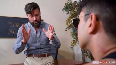 Questo studente twink ha bisogno di buoni voti, così stuzzica e seduce il suo professore DILF! Si toglie la camicia e i pantaloni e inizia a succhiare il suo cazzo...