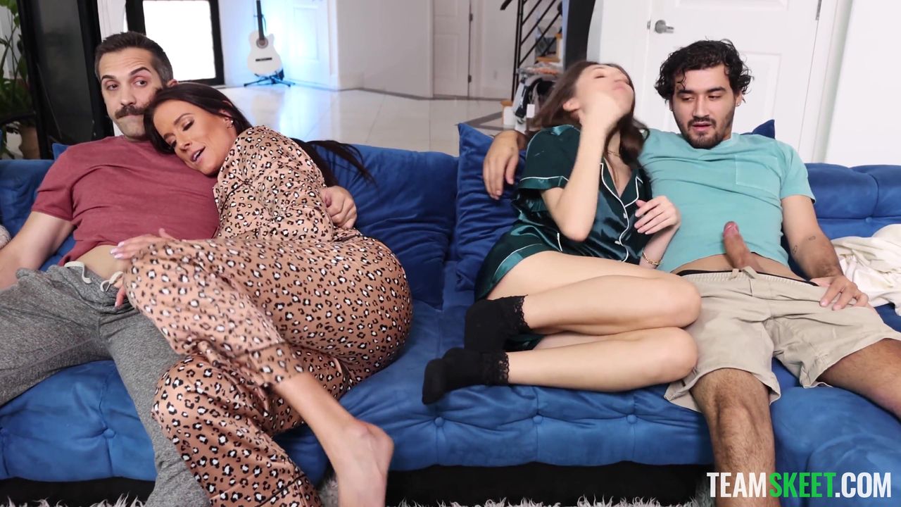 Sofie Marie e Maya Woulfe sono l'una accanto all'altra con i loro fidanzati. Le cose si scaldano e all'improvviso si fanno scopare fianco a fianco