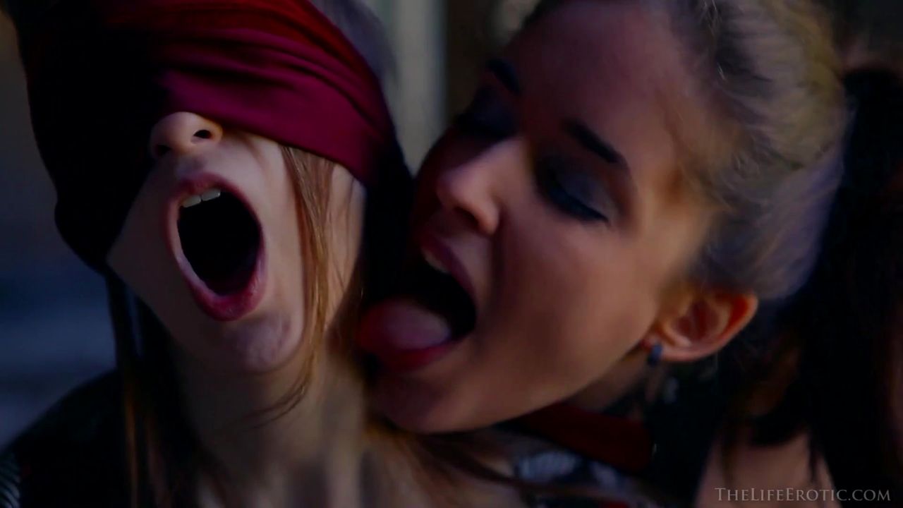 In questo edificio abbandonato, Beata Undine e Emily J si divertono. Con gli occhi bendati, si fa masturbare la figa fino a quando non gode.