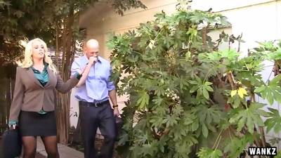 Lei è il capo ed è bionda e sexy... oggi scopa il suo dipendente che non potrà dire di no! Si passa l'olio sulle sue grandi tette e scopa la figa fino a venirgli sul viso.