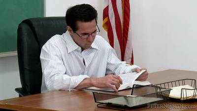 Stavolta lo vediamo provare a insegnare a questa bionda la lezione del giorno ma non è facile resisterle perché lei ha delle belle tette e non c'è alternativa a scoparla in classe.