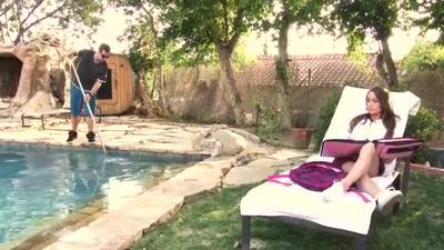 Kacy Lane e il giardiniere in piscina