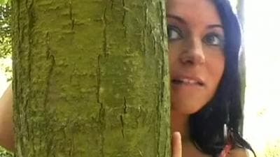 Questa mora sexy ama passare il tempo all'aperto con il suo uomo e oggi la vedremo in azione in mezzo alla foresta!