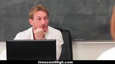 Questa giovane rossa è in punizione per avere copiato durante un test, ma riuscirà a sedurre il prof e scoparlo!
