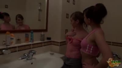 Una scena lesbo bollente nel loro bagno